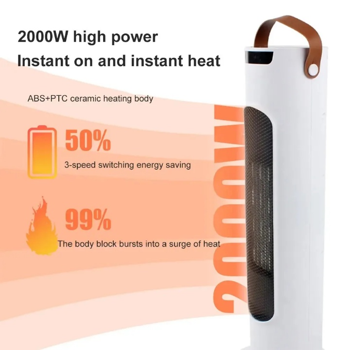 ویژگیهای کلیدی محصول:تنظیم دمای سهحالته:حالت اول: باد خنک و ملایم برای تهویه در روزهای گرم حالت دوم: گرمای ۱۰۰۰ وات، مناسب برای صبحهای سرد و بیدار شدن راحت حالت سوم: گرمای سریع ۲۰۰۰ وات برای گرمکردن کامل فضا در زمستان چرخش ۲۷۰ درجهای: پخش یکنواخت هوا در تمام جهات برای گرمکردن سریعتر اتاق طراحی مدرن و مینیمال: بدنه استوانهای سفید با جلوپنجره مشکی و دسته چرمی برای حمل آسان ایمن و کممصرف: مجهز به سیستم محافظت در برابر گرمای بیش از حد و مصرف بهینه برق مناسب برای فضاهای خانگی و اداری: اتاق خواب، نشیمن، دفتر کار، یا سالن انتظار