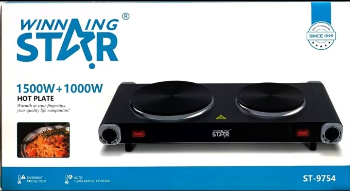 اجاق برقی دو شعله «Winning STAR» مدل ST-9754 با توان ۲۵۰۰ وات، مناسب برای پختوپز سریع و ایمن
