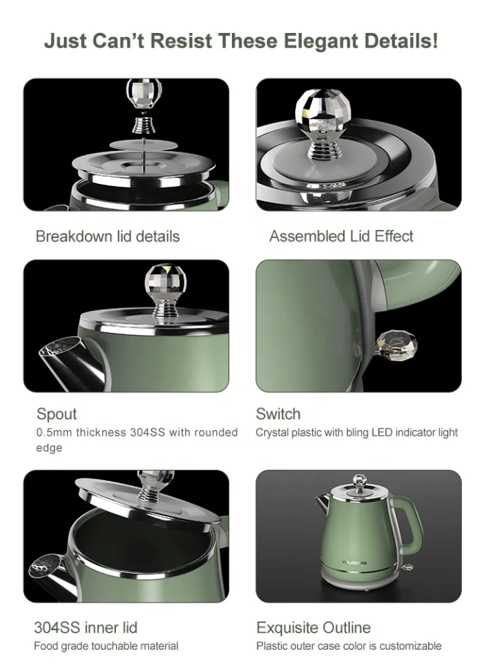 ✨ کتری برقی ERICSON – تجربهای نو از زندگی مدرنویژگیهای برجسته محصول:جنس بدنه: ساختهشده از استیل ضدزنگ 304 با کیفیت بالا، مقاوم در برابر خوردگی و زنگزدگی طراحی دو لایه: لایه داخلی استیل و لایه بیرونی عایق حرارتی برای جلوگیری از سوختگی دست درپوش فلزی با دسته شفاف: زیبایی و کارایی در کنار همپایه 360 درجه بدون سیم: امکان چرخش کامل و استفاده آسان از هر زاویه سیستم ایمنی هوشمند: دارای کلید پاییندست با قطعکن خودکار برق هنگام جوش آمدن یا کمبود آب ظرفیت استاندارد: مناسب برای استفاده روزمره در خانه یا محل کارتنوع رنگ: آبی، سبز، سفید و خاکستری تیره – هماهنگ با انواع دکوراسیون آشپزخانه مزایای رقابتی:طراحی مدرن و مینیمال با شعار برند: "NEW LIFE EXPERIENCE"مناسب برای خانوادهها، دفاتر کاری، و هدیههای شیک ایمن، سریع، و کممصرف – ترکیبی از زیبایی و عملکرد