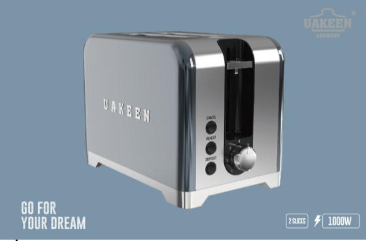 تستر نان UAKEEN مدل کلاسیک مشکی نقرهای – توان ۱۰۰۰ وات، دو شیار✅ مشخصات فنی:ویژگی توضیحات برند UAKEENrتوان مصرفی۱۰۰۰ وات تعداد شیار۲ عدد (مناسب برای دو برش نان)جنس بدنه ترکیب استیل ضدزنگ و پلاستیک مقاوم رنگ مشکی مات با جزئیات نقرهای براق دکمههاCANCEL (لغو)، RE-HEAT (گرمکردن مجدد)، DEFROST (یخزدایی)تنظیم درجه برشته شدندارد (با پیچ تنظیم)سینی خردهنان قابل جدا شدن برای تمیزکاری آسان پایه ضدلغزش داردابعاداستاندارد جمعوجور مناسب آشپزخانههای مدرن🌟 ویژگیهای برجسته:طراحی مدرن و مینیمال با ترکیب رنگ لوکس عملکرد چندگانه: یخزدایی، گرمکردن مجدد، لغو فوری تنظیم دلخواه میزان برشته شدن نان مناسب برای نان تست، نان فرانسوی، نان سبوسدار و نانهای صبحانه تمیزکاری آسان با سینی خردهنان جداشونده💎 مزایای احساسی و سبک زندگی:شروع روز با نان گرم و برشته، بدون دردسرحس نظم و زیبایی در آشپزخانه با طراحی آلمانی انتخابی هوشمند برای خانوادههای شیکپسندمناسب برای هدیه به زوجهای جوان یا خانههای تازه تاسیس🛒