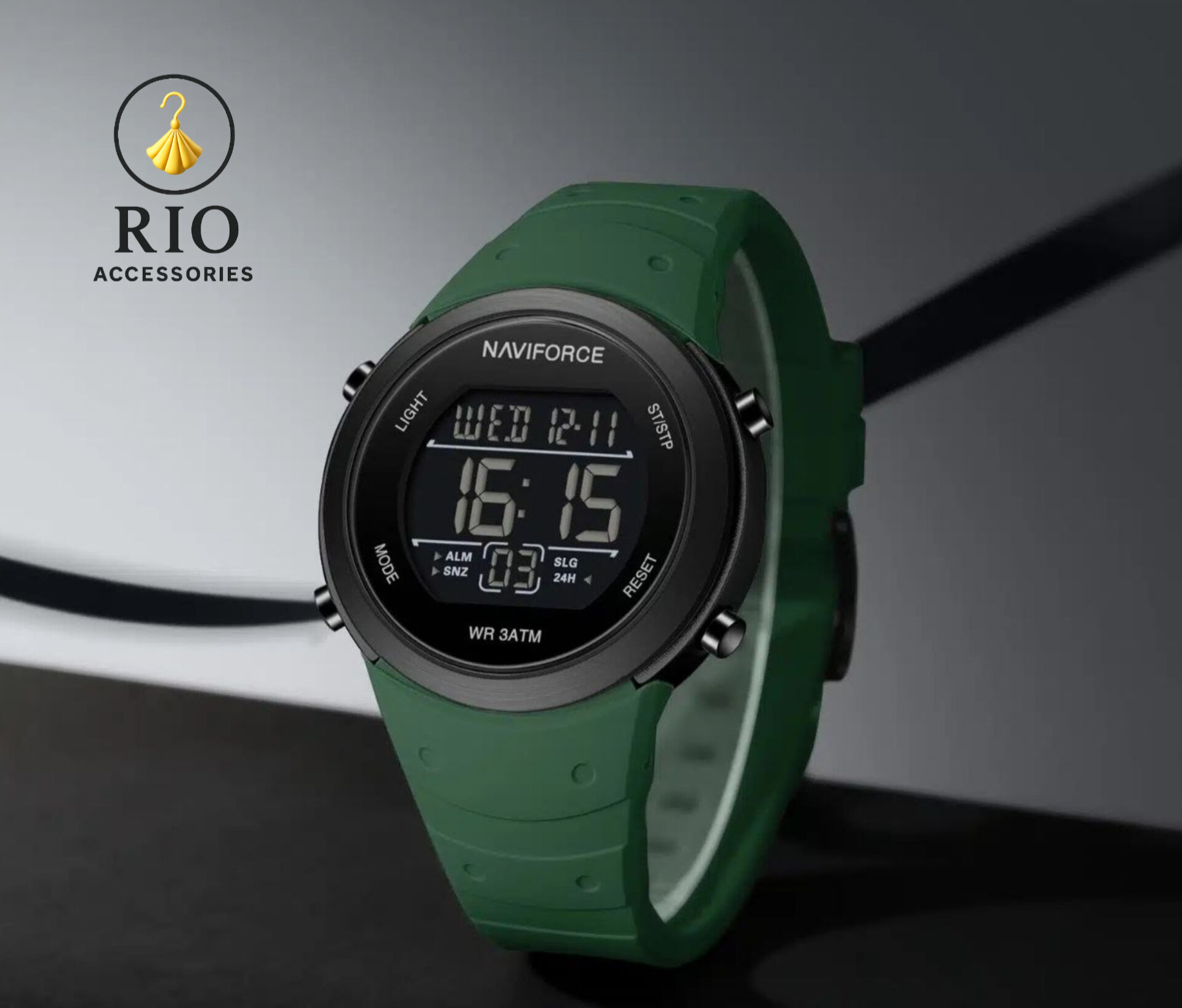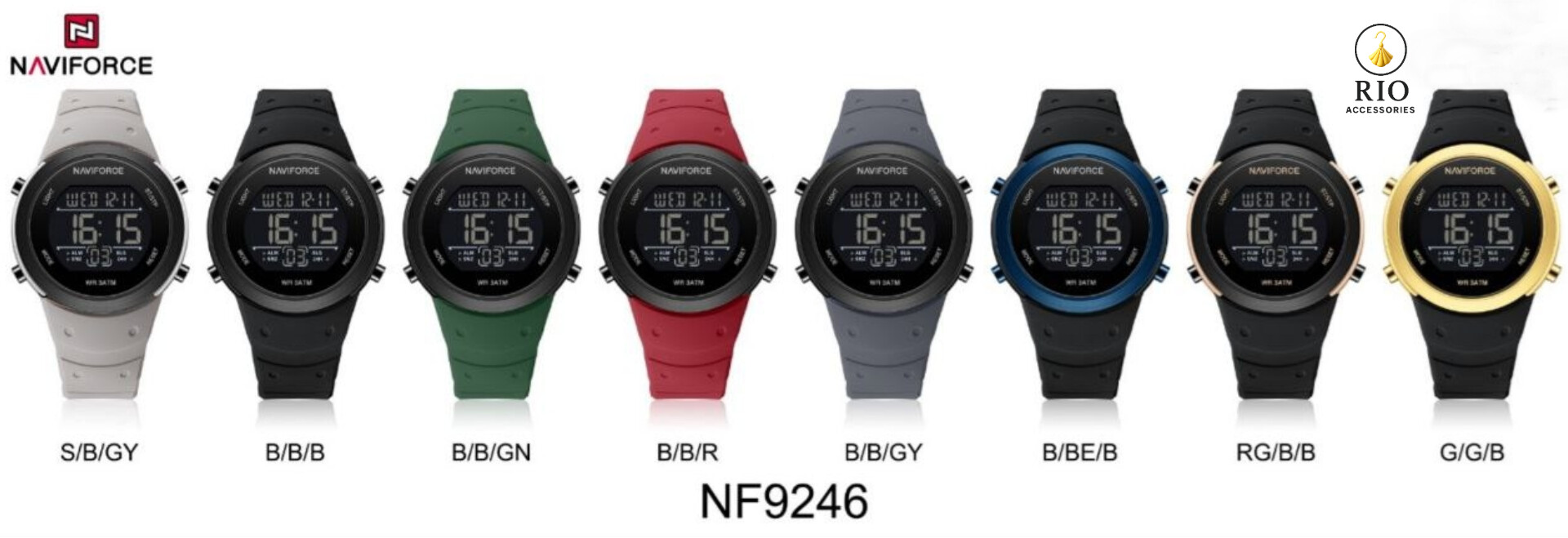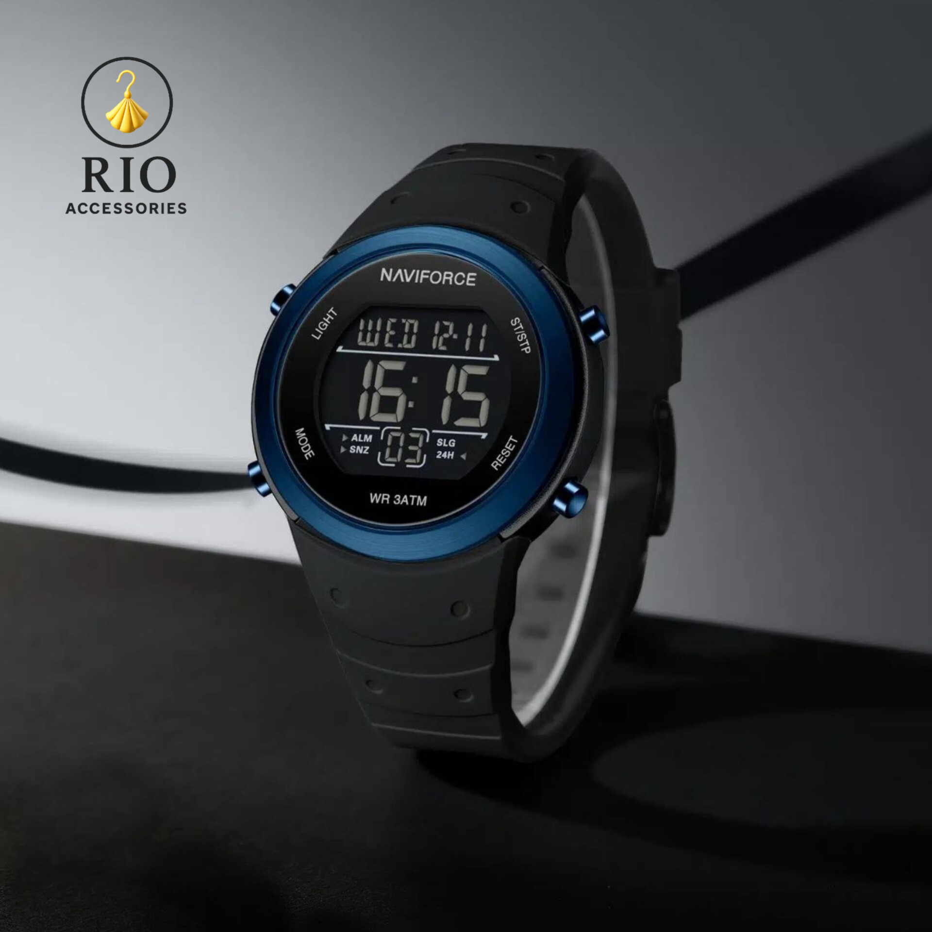ساعت دیجیتال مردانه NAVIFORCE مدل NF9246طراحی اسپرت، عملکرد دقیق، انتخابی هوشمندانهساعت دیجیتال مردانه NAVIFORCE مدل NF9246 با قیمت طراحی مدرن و امکانات کاربردی، گزینهای عالی برای آقایانی است که به دنبال استایل اسپرت و عملکرد حرفهای هستند. این ساعت با صفحه دیجیتال چندمنظوره، بند سیلیکونی مقاوم و قاب فلزی ضد خش، هم برای استفاده روزمره مناسب است و هم برای فعالیتهای ورزشی و نیمهرسمی.ویژگیهای محصولاین مدل دارای نمایشگر دیجیتال با قابلیت نمایش زمان، تاریخ، روز هفته، آلارم و کرنومتر است. بند آن از جنس سیلیکون ضد حساسیت ساخته شده و قاب فلزی آن در برابر ضربه و خط و خش مقاوم است. ساعت تا عمق 30 متر در برابر آب مقاوم بوده و برای شستوشوی دست یا استفاده در هوای بارانی کاملاً مناسب است. قطر صفحه حدود 45 میلیمتر بوده و وزن سبک آن باعث راحتی در استفاده طولانیمدت میشود.محتویات جعبه داخل بستهبندی ساعت NF9246، دفترچه راهنما، کارت گارانتی شرکتی و جعبه اورجینال برند NAVIFORCE قرار دارد.