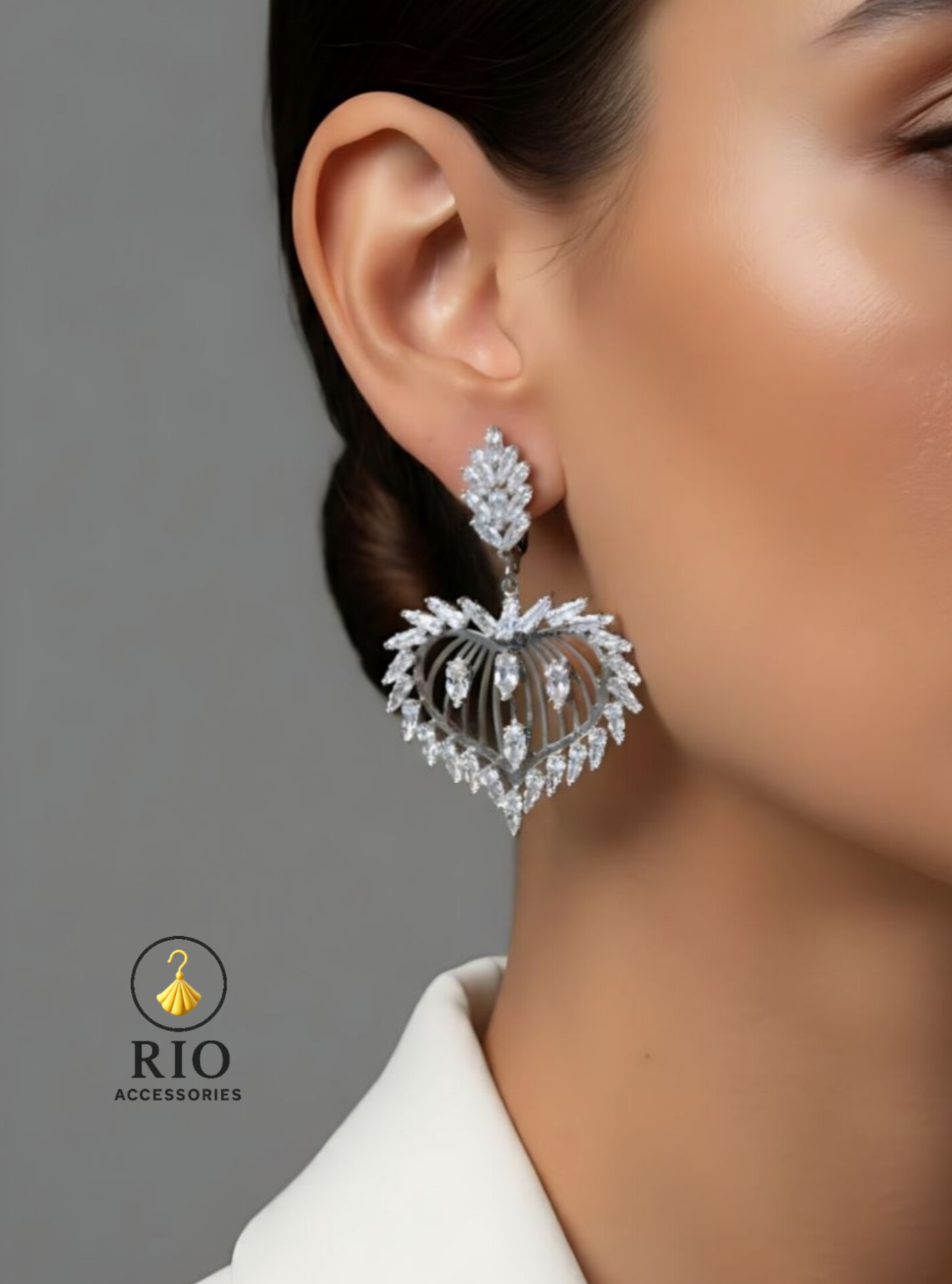 گوشواره جواهری آویز قلبی شیک