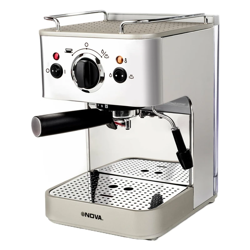 اسپرسوساز نوا 149 – انتخابی اقتصادی با کیفیتی حرفهای. طراحی استیل، فشار بخار 15 بار و فوم شیر عالی برای تجربه یک اسپرسوی واقعی... با اسپرسوساز نوا 149، هر روز طعم واقعی قهوه ایتالیایی را در خانه تجربه کنید. طراحی مدرن، فشار بخار 15 بار و توان 1250 وات، این دستگاه را به انتخابی محبوب برای دوستداران قهوه تبدیل کرده است مصرفی: 1250 واتفشار بخار: 15 بار برای استخراج کامل عطر و طعم قهوهظرفیت مخزن آب: 1.2 لیتر، مناسب برای استفاده روزانه خانوادههاجنس بدنه: ترکیب استیل ضدزنگ و پلاستیک مقاوم با طراحی مدرننازل بخار دستی: برای تهیه فوم شیر و انواع نوشیدنیهای بر پایه اسپرسوسیستم ایمنی: خاموشی خودکار برای جلوگیری از آسیب و مصرف بیهوده انرژی کاربری: مناسب برای مصارف خانگی و کافههای کوچک.